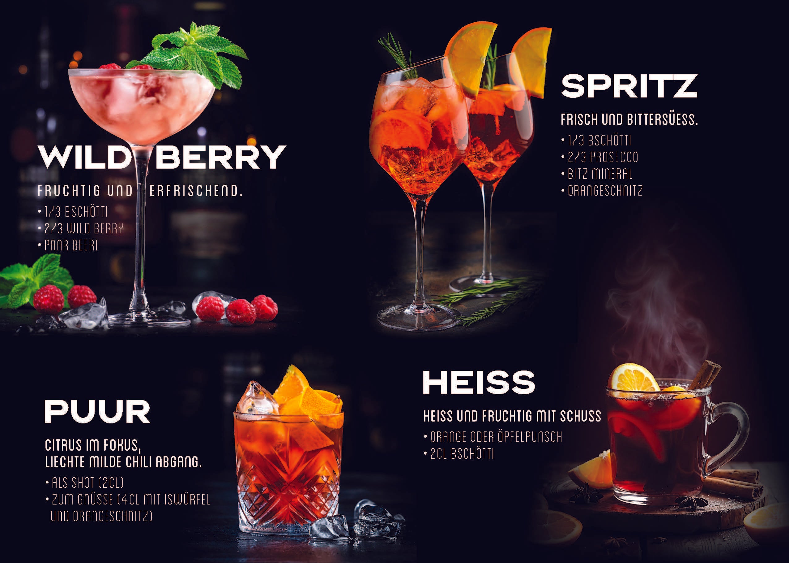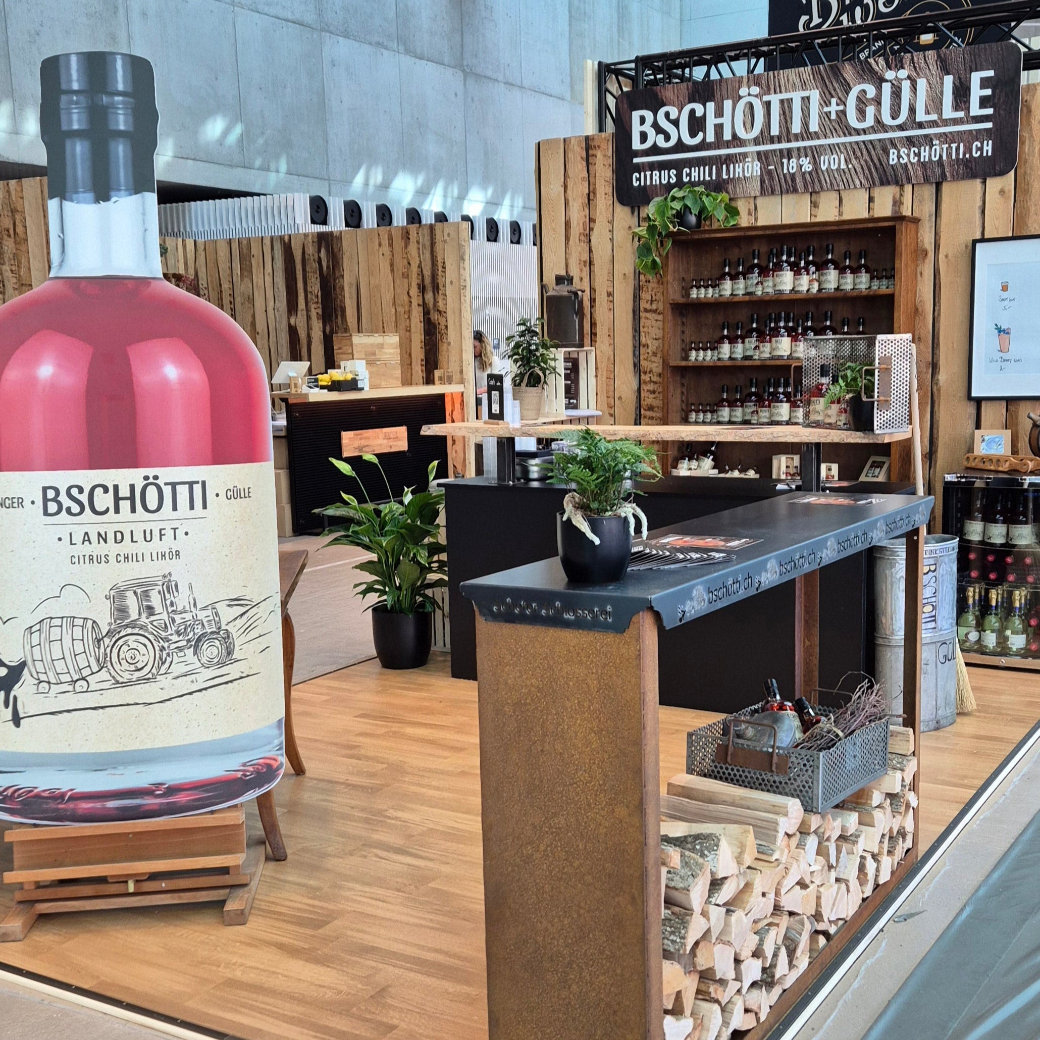 Da isch de Ursprung gsi. Irgendwen im 2021 bini uft Schnappsidee mit Bschötti cho. I ha nöd mol gwüsst wa füren Gschmack oder wie die Fläsche usgseh söll, aber glich hani rasch 100 Fläsche verchauft. Nocher hani dä lustig Tropfe mit de Appenzeller Edelbrand AG hergstellt und usglieferet. Kurz druf abe sind scho di erste Getränkehändler cho und paar regionali Zitige hend über mi brichtet. Bschötti chaufe.