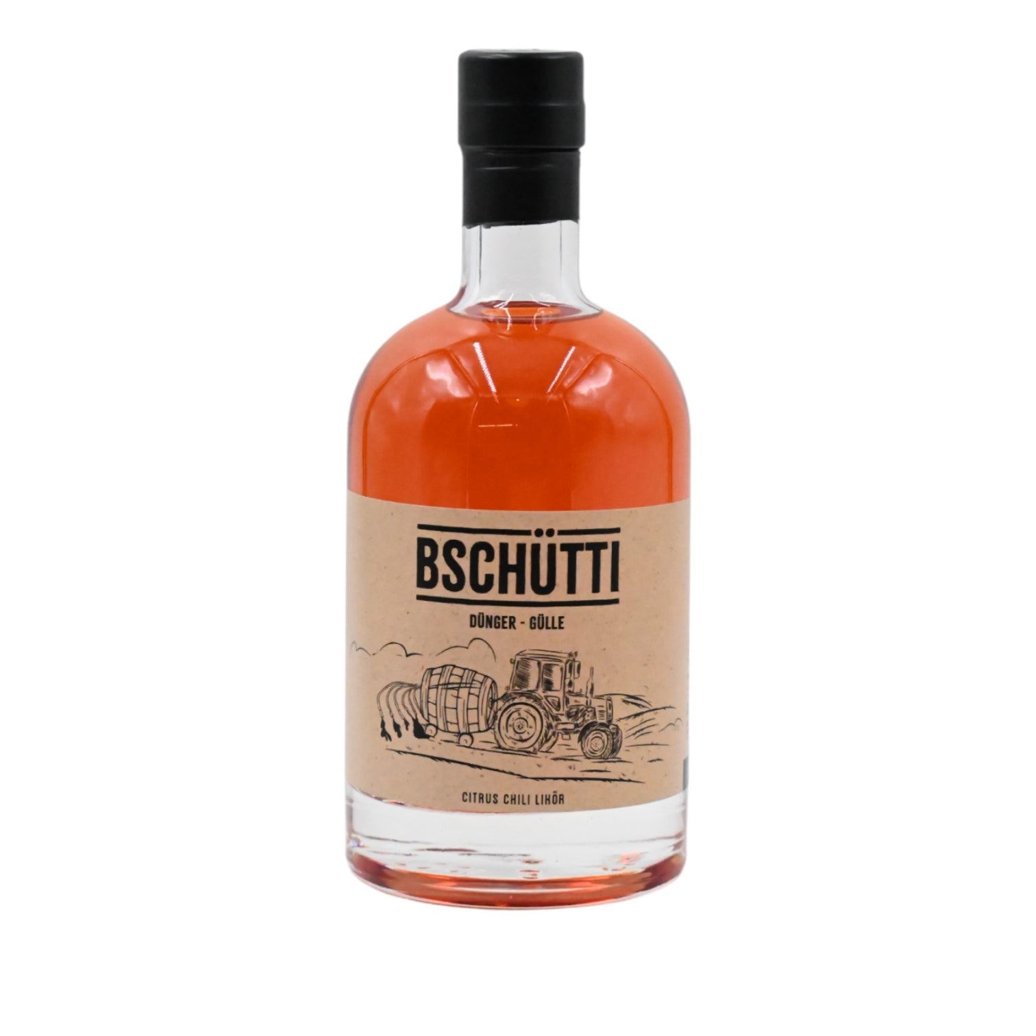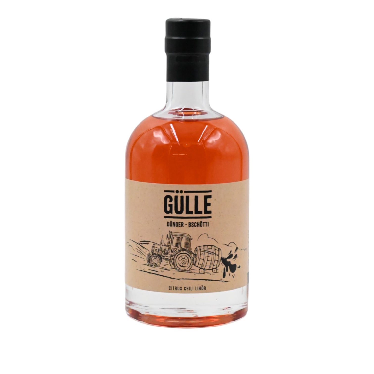 Noch öpe eim Johr hani gmerkt dass Bschötti eigentli nur i de Ostschwiz chli en Begriff isch, en Zürcher het amel eifach de Traktor uf de Etikette lustig gfunde aber nöd gwüsst, um was es goht. Jetzt hani min Likör gno, de Traktor uf dä Etikette nach Züri usgrichtet und scho isch die Gülle entstande. Gülle chaufe.